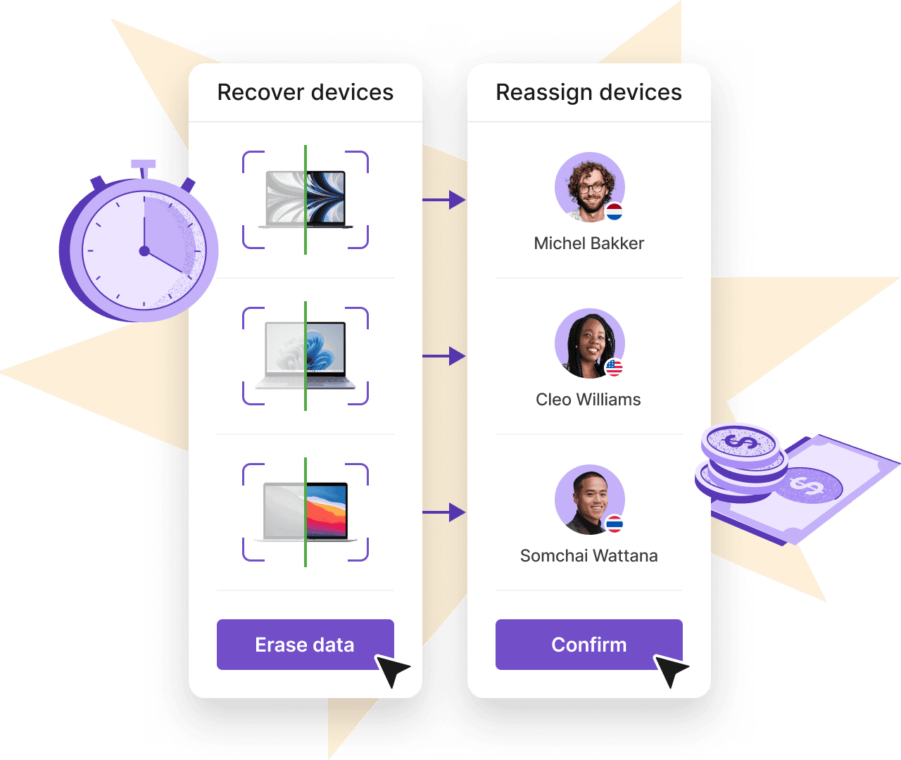 - Automated device recovery, certified data erasure, and redeployment