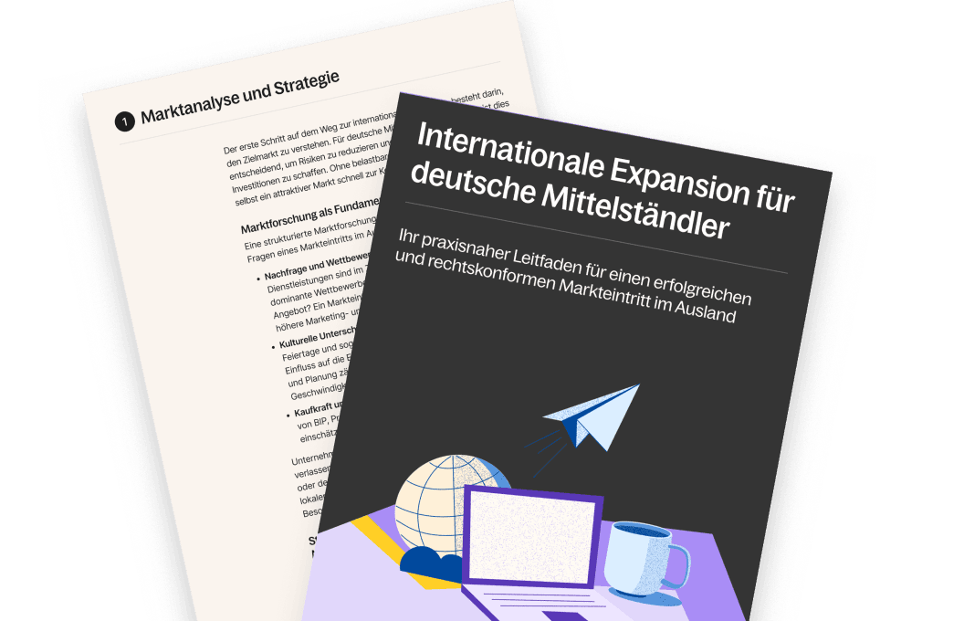 Internationale Expansion ist kein Risiko, wenn sie richtig geplant wird. Laden Sie den Leitfaden herunter, um Ihre Wachstumsstrategie gezielt vorzubereiten und von bewährten Strukturen zu profitieren.
