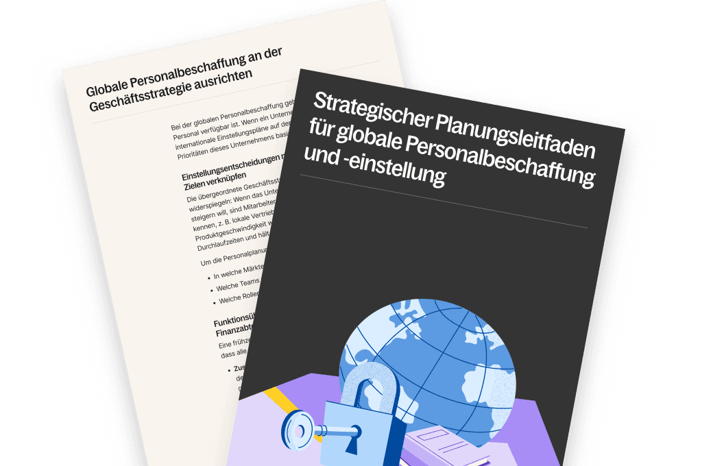 Ob beim Aufbau des ersten grenzüberschreitenden Teams oder bei der Expansion in Dutzende Märkte, der Leitfaden führt durch alle Schritte zur Erstellung einer Einstellungsstrategie, die auf Geschäftsziele abgestimmt ist und Compliance sicherstellt.