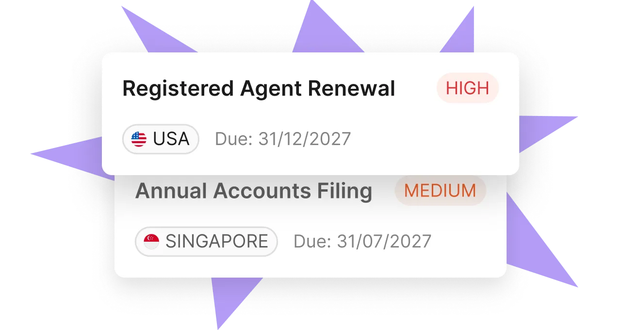 Centralize directors, ownership structures, shareholder records, and filing deadlines across all your entities in one system.