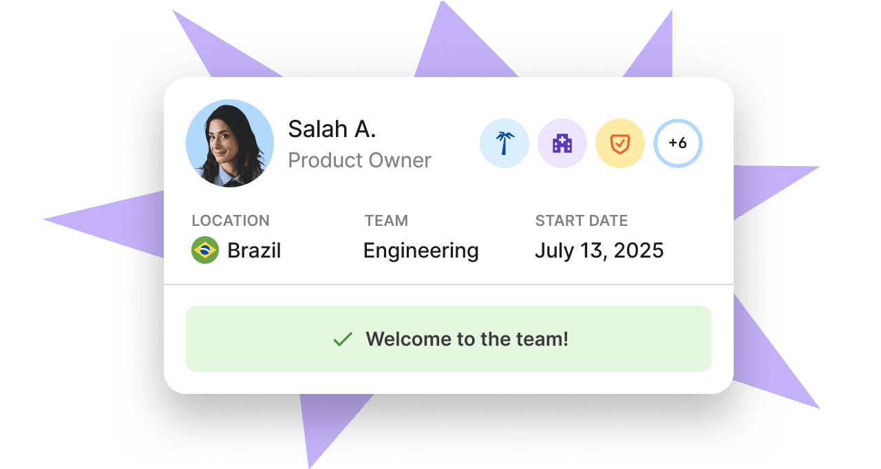 - Effortless onboarding with localized contracts, payroll, and benefits handled for you.