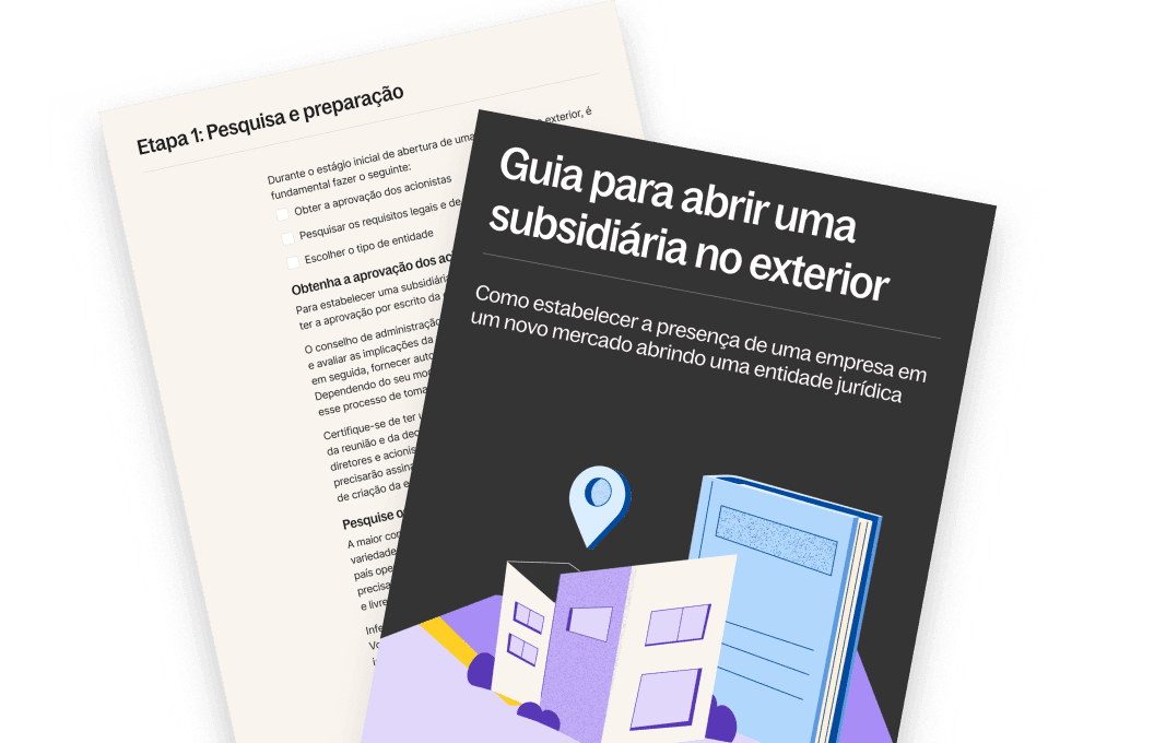 Neste guia, falaremos sobre os benefícios e as considerações sobre a administração de uma subsidiária e apresentaremos todo o processo de preparação de uma entidade no exterior para começar a operar, incluindo a fase de pesquisa, coleta de documentação de compliance, registro de identificação comercial e impostos, formação de uma equipe e muito mais.