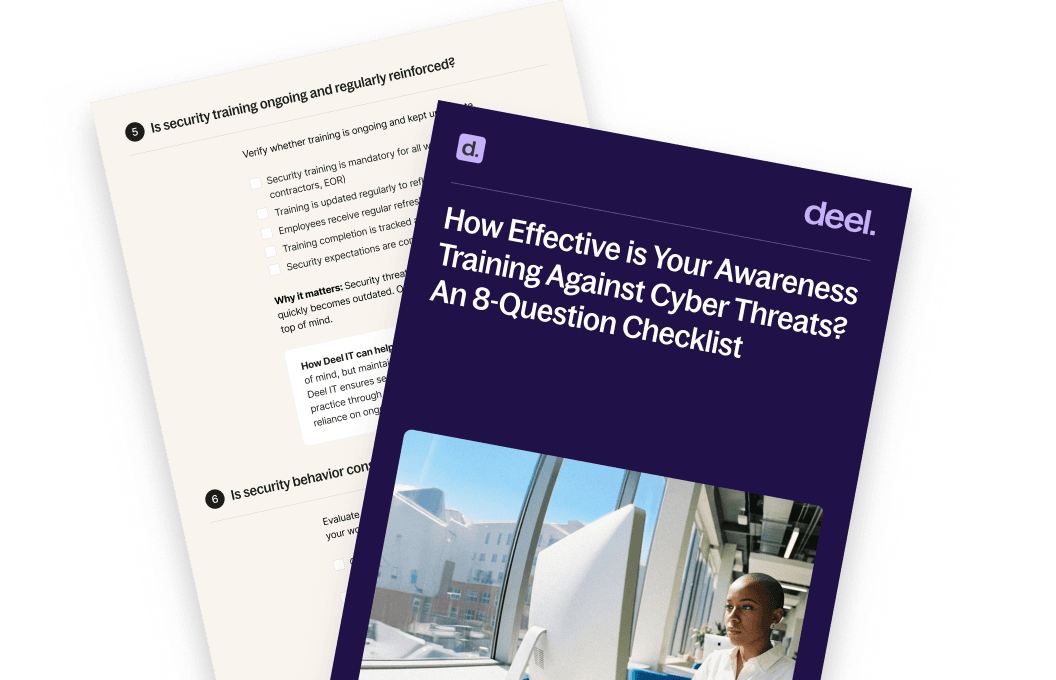 This checklist helps you identify where training alone may fall short. Deel IT helps you close those gaps by turning security from awareness into enforcement.