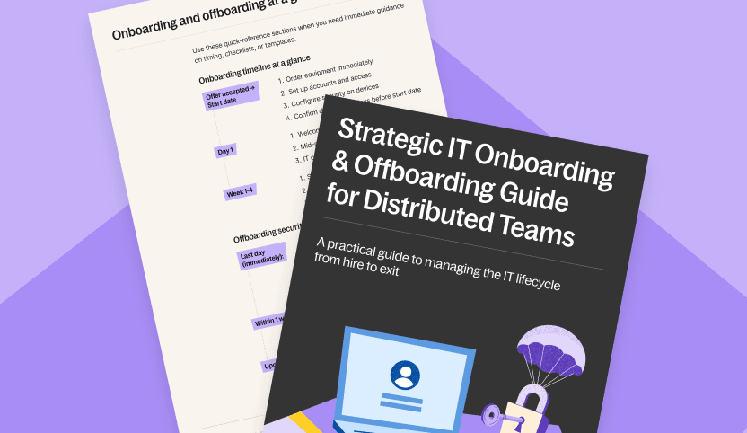 IT onboarding and offboarding shouldn’t drain your HR team’s time, or put your company at risk. This guide gives HR and People Ops leaders a clear, scalable framework for managing the entire IT lifecycle, with best practices, checklists, and ready-to-use templates built for global teams.